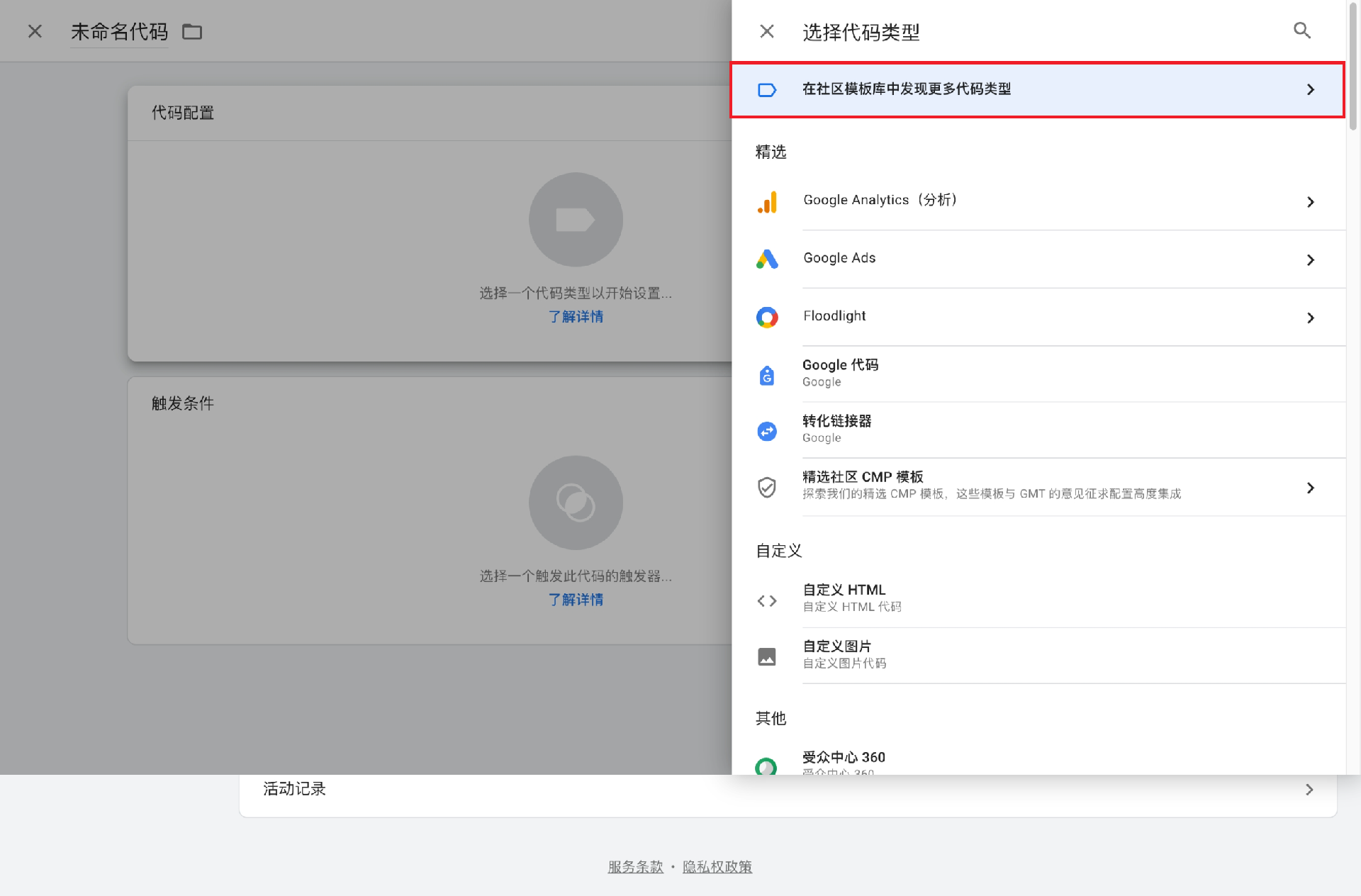 (1)登錄并進入與您網(wǎng)站關(guān)聯(lián)的GTM工作區(qū),并新建代碼;
