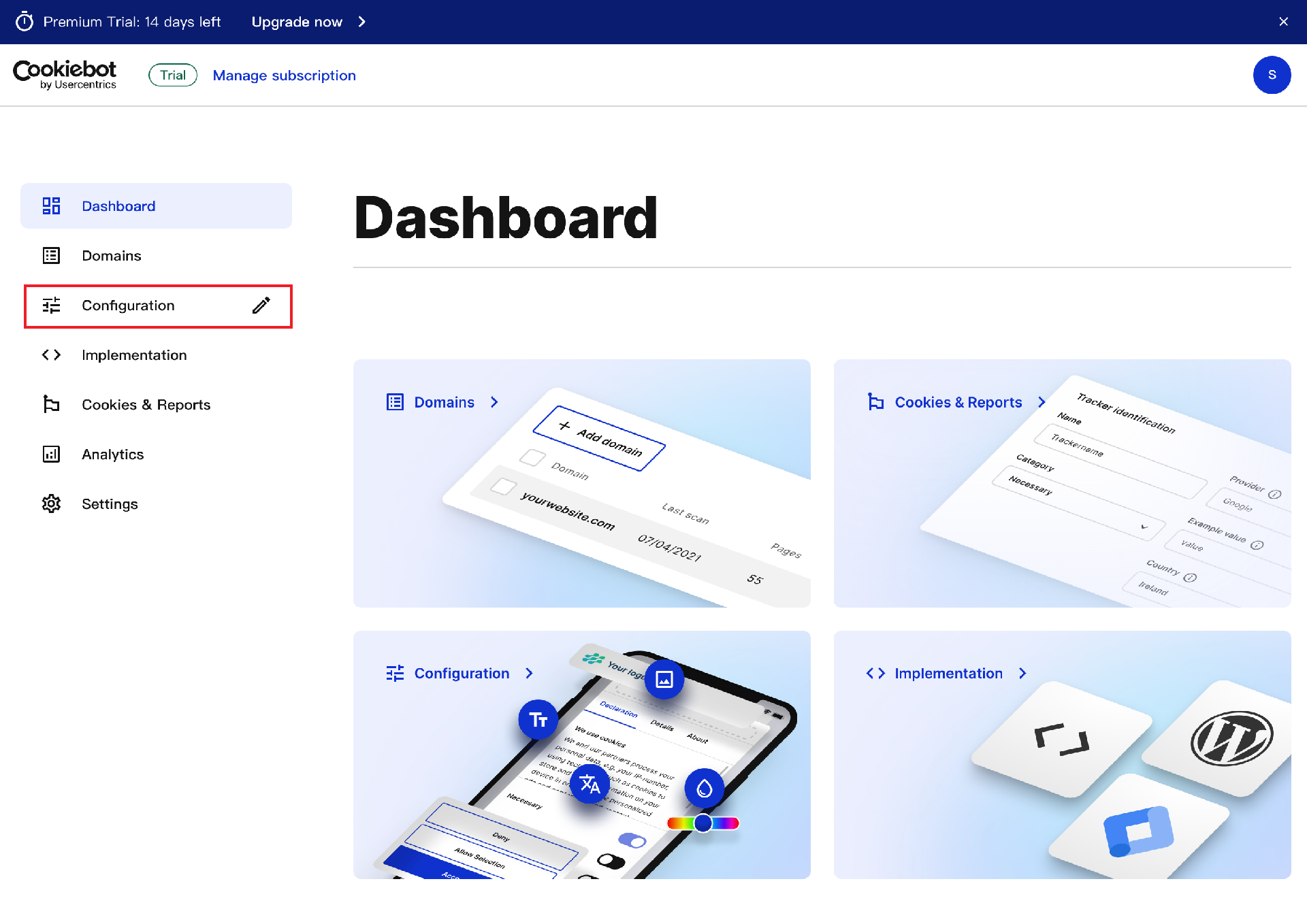 (4)登錄Cookiebot,進入CMP配置引導(dǎo)頁面;